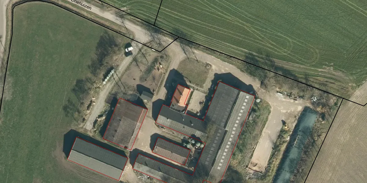 Het perceel waarop Driehuizen 7 staat heeft een oppervlakte van 2,9 ha. Dit is een zeer groot perceel. De perceeloppervlakte wordt geregistreerd door het Kadaster. Gedetailleerde informatie over de maten van dit perceel kunt u vinden in het rapport Kadastrale kaart met maatvoering van Driehuizen 7.
