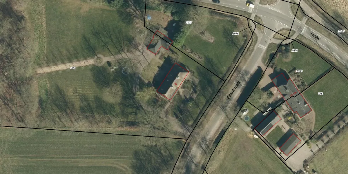 Het perceel waarop Ellenbroek 9-A staat heeft een oppervlakte van 9777 m². Dit is een zeer groot perceel. De perceeloppervlakte wordt geregistreerd door het Kadaster. Gedetailleerde informatie over de maten van dit perceel kunt u vinden in het rapport Kadastrale kaart met maatvoering van Ellenbroek 9-A.