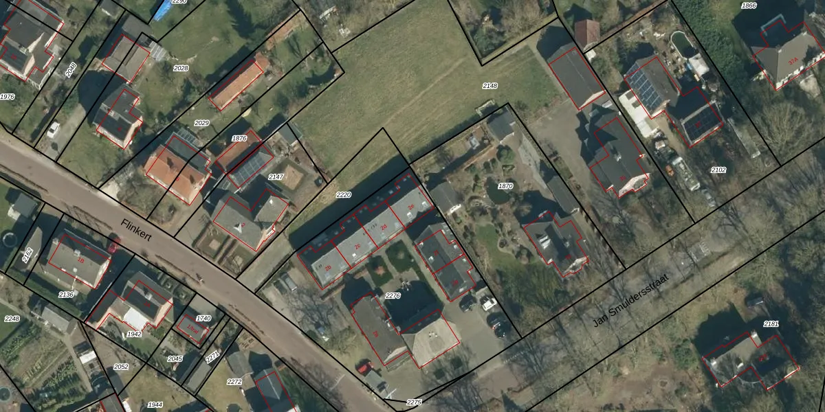 Het perceel waarop Flinkert 2-e staat heeft een oppervlakte van 1973 m². Dit is een zeer groot perceel. De perceeloppervlakte wordt geregistreerd door het Kadaster. Gedetailleerde informatie over de maten van dit perceel kunt u vinden in het rapport Kadastrale kaart met maatvoering van Flinkert 2-e.
