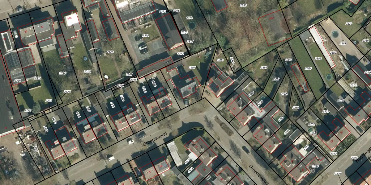 Het perceel waarop Groenewoud 56 staat heeft een oppervlakte van 568 m². Dit is een groot perceel. De perceeloppervlakte wordt geregistreerd door het Kadaster. Gedetailleerde informatie over de maten van dit perceel kunt u vinden in het rapport Kadastrale kaart met maatvoering van Groenewoud 56.