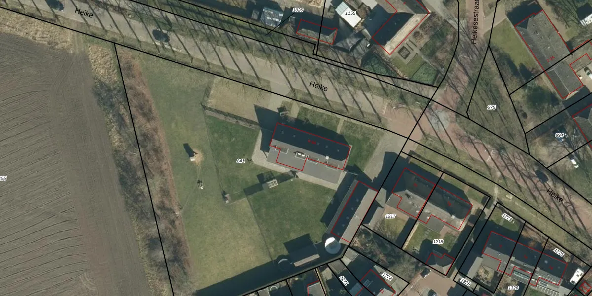 Het perceel waarop Heike 9-A staat heeft een oppervlakte van 5223 m². Dit is een zeer groot perceel. De perceeloppervlakte wordt geregistreerd door het Kadaster. Gedetailleerde informatie over de maten van dit perceel kunt u vinden in het rapport Kadastrale kaart met maatvoering van Heike 9-A.