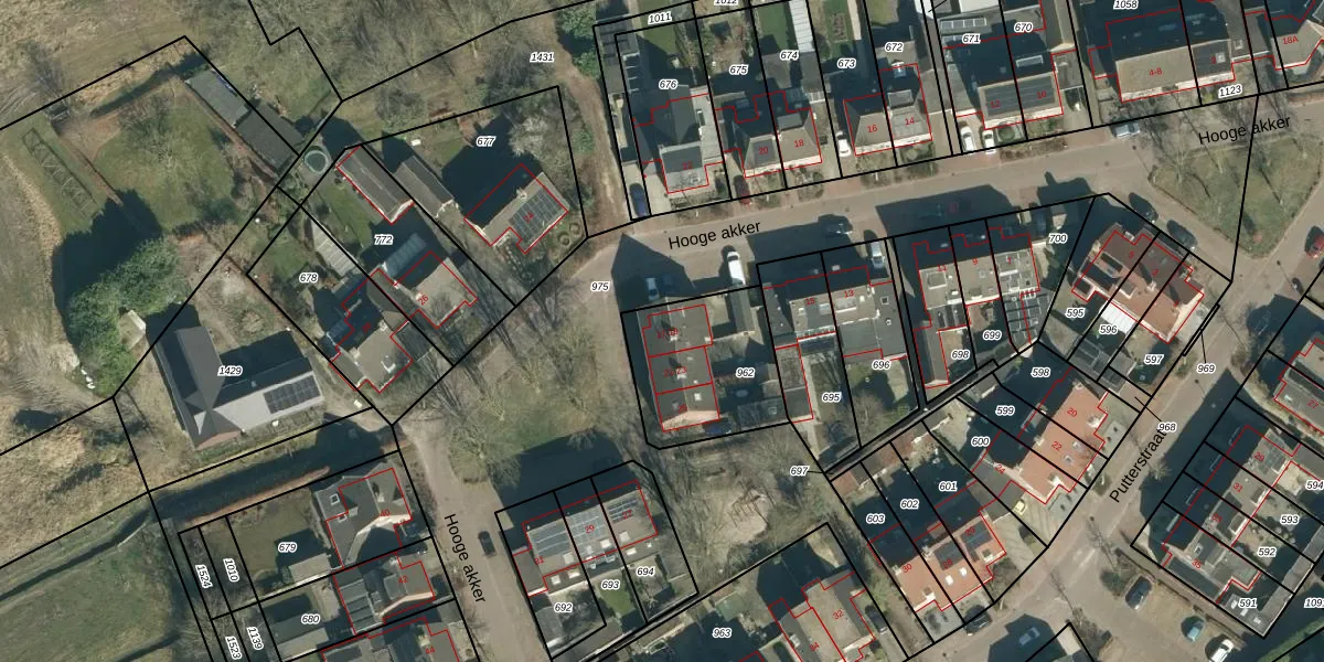 Het perceel waarop Hooge akker 17 staat heeft een oppervlakte van 457 m². Dit is een groot perceel. De perceeloppervlakte wordt geregistreerd door het Kadaster. Gedetailleerde informatie over de maten van dit perceel kunt u vinden in het rapport Kadastrale kaart met maatvoering van Hooge akker 17.