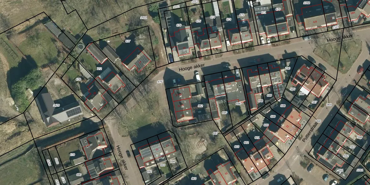 Het perceel waarop Hooge akker 19 staat heeft een oppervlakte van 457 m². Dit is een groot perceel. De perceeloppervlakte wordt geregistreerd door het Kadaster. Gedetailleerde informatie over de maten van dit perceel kunt u vinden in het rapport Kadastrale kaart met maatvoering van Hooge akker 19.