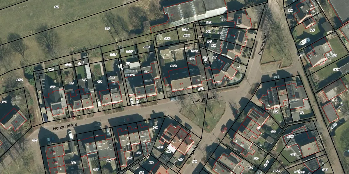 Het perceel waarop Hooge akker 8 staat heeft een oppervlakte van 496 m². Dit is een groot perceel. De perceeloppervlakte wordt geregistreerd door het Kadaster. Gedetailleerde informatie over de maten van dit perceel kunt u vinden in het rapport Kadastrale kaart met maatvoering van Hooge akker 8.
