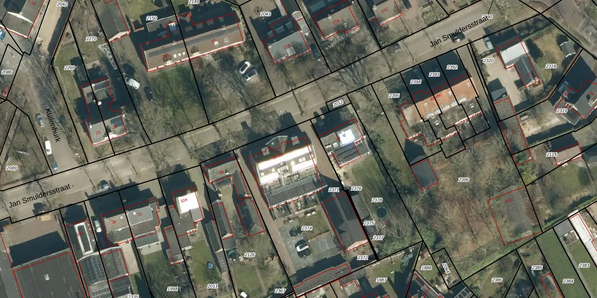 Het perceel waarop Jan Smuldersstraat 36-B staat heeft een oppervlakte van 1553 m². Dit is een zeer groot perceel. De perceeloppervlakte wordt geregistreerd door het Kadaster. Gedetailleerde informatie over de maten van dit perceel kunt u vinden in het rapport Kadastrale kaart met maatvoering van Jan Smuldersstraat 36-B.
