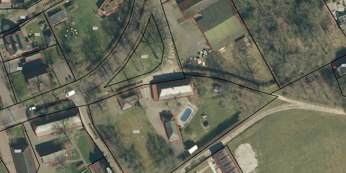 Jan Smuldersstraat 6 is gelegen op kadastraal perceel VSM01E2052. Deze kadastrale aanduiding is uniek en wordt gebruikt door het Kadaster om eigendomsrechten en andere zakelijke rechten vast te leggen. Het perceel maakt onderdeel uit van de kadastrale gemeente Vessem.