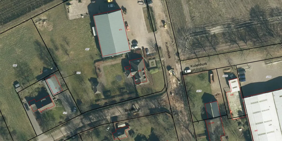 Het perceel waarop Kuilenhurk 37-B staat heeft een oppervlakte van 6060 m². Dit is een zeer groot perceel. De perceeloppervlakte wordt geregistreerd door het Kadaster. Gedetailleerde informatie over de maten van dit perceel kunt u vinden in het rapport Kadastrale kaart met maatvoering van Kuilenhurk 37-B.