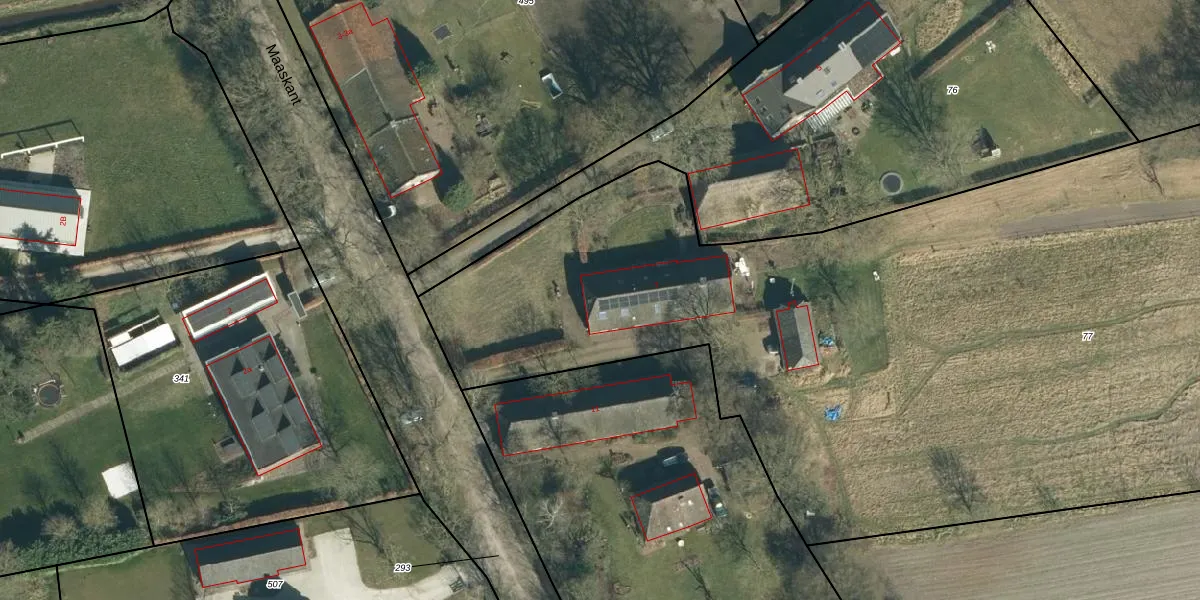 Het perceel waarop Maaskant 7 staat heeft een oppervlakte van 9810 m². Dit is een zeer groot perceel. De perceeloppervlakte wordt geregistreerd door het Kadaster. Gedetailleerde informatie over de maten van dit perceel kunt u vinden in het rapport Kadastrale kaart met maatvoering van Maaskant 7.