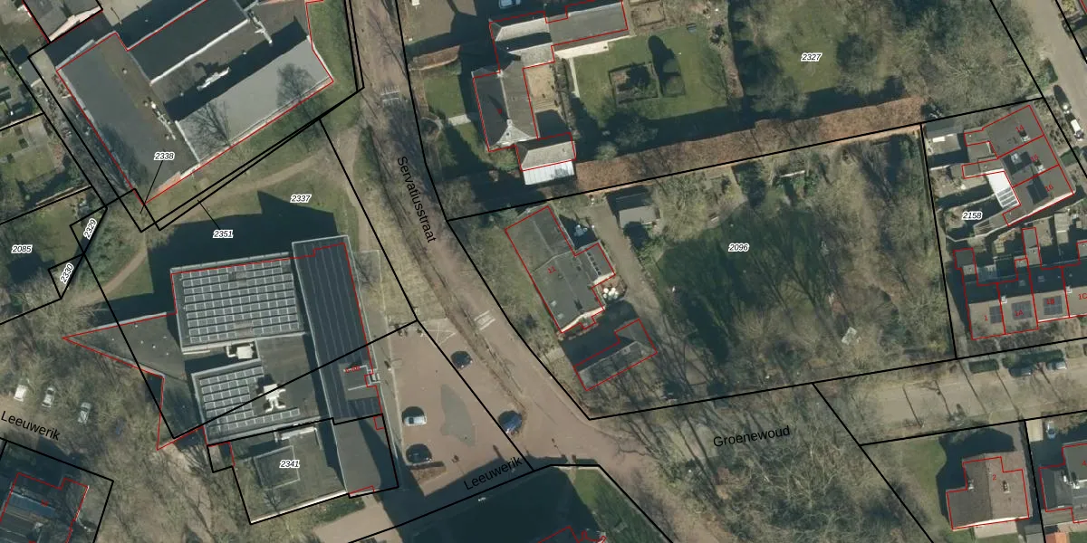 Het perceel waarop Servatiusstraat 11 staat heeft een oppervlakte van 3413 m². Dit is een zeer groot perceel. De perceeloppervlakte wordt geregistreerd door het Kadaster. Gedetailleerde informatie over de maten van dit perceel kunt u vinden in het rapport Kadastrale kaart met maatvoering van Servatiusstraat 11.
