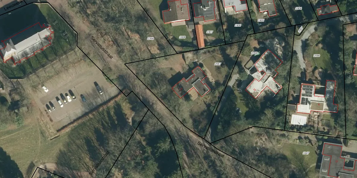 Het perceel waarop Servatiusstraat 13 staat heeft een oppervlakte van 1800 m². Dit is een zeer groot perceel. De perceeloppervlakte wordt geregistreerd door het Kadaster. Gedetailleerde informatie over de maten van dit perceel kunt u vinden in het rapport Kadastrale kaart met maatvoering van Servatiusstraat 13.