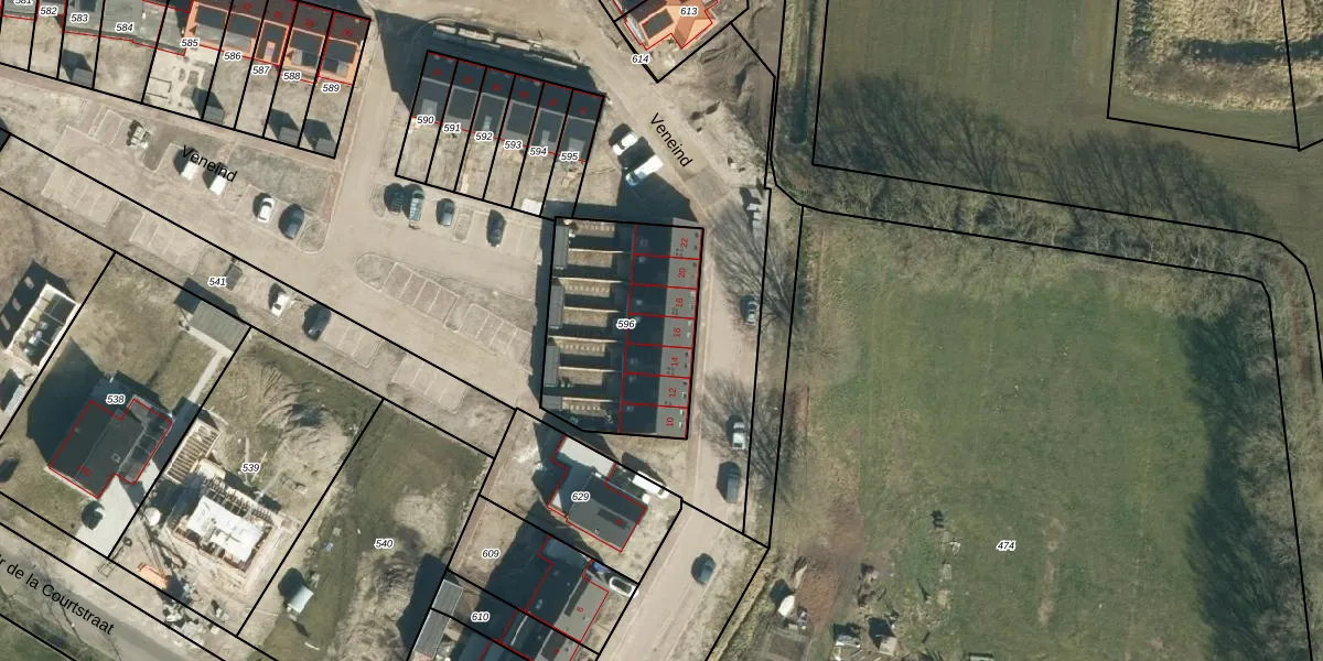 Veneind 16 is gelegen op kadastraal perceel VSM01L596. Deze kadastrale aanduiding is uniek en wordt gebruikt door het Kadaster om eigendomsrechten en andere zakelijke rechten vast te leggen. Het perceel maakt onderdeel uit van de kadastrale gemeente Vessem.