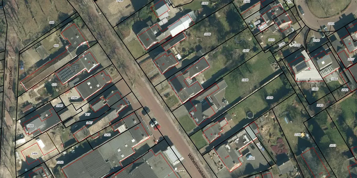 Het perceel waarop Wilhelminalaan 12 staat heeft een oppervlakte van 1005 m². Dit is een zeer groot perceel. De perceeloppervlakte wordt geregistreerd door het Kadaster. Gedetailleerde informatie over de maten van dit perceel kunt u vinden in het rapport Kadastrale kaart met maatvoering van Wilhelminalaan 12.