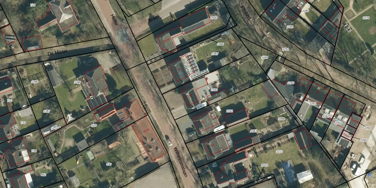 Het perceel waarop Wilhelminalaan 52 staat heeft een oppervlakte van 843 m². Dit is een groot perceel. De perceeloppervlakte wordt geregistreerd door het Kadaster. Gedetailleerde informatie over de maten van dit perceel kunt u vinden in het rapport Kadastrale kaart met maatvoering van Wilhelminalaan 52.