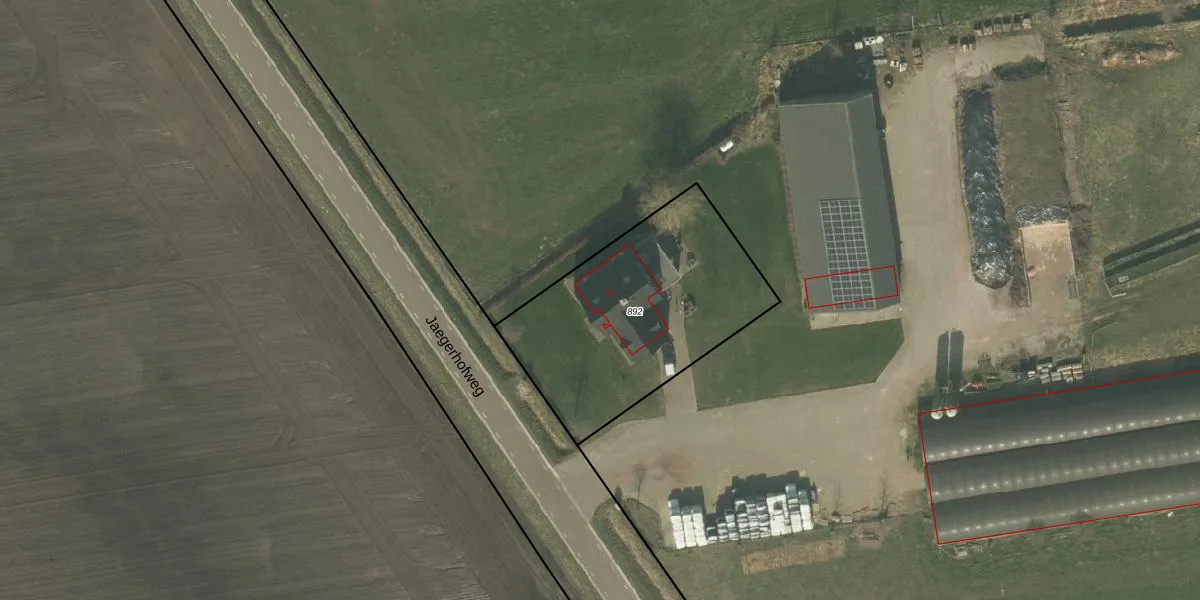 Jaegerhofweg 21 is gelegen op kadastraal perceel VRY00O892. Deze kadastrale aanduiding is uniek en wordt gebruikt door het Kadaster om eigendomsrechten en andere zakelijke rechten vast te leggen. Het perceel maakt onderdeel uit van de kadastrale gemeente Venray.