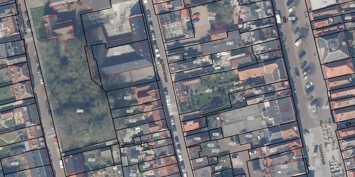 Achterstraat 47 is gelegen op kadastraal perceel VAN00A2580. Deze kadastrale aanduiding is uniek en wordt gebruikt door het Kadaster om eigendomsrechten en andere zakelijke rechten vast te leggen. Het perceel maakt onderdeel uit van de kadastrale gemeente Vianen.