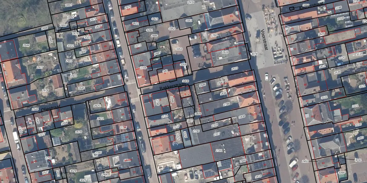 Bakkerstraat 4 is gelegen op kadastraal perceel VAN00A3408. Deze kadastrale aanduiding is uniek en wordt gebruikt door het Kadaster om eigendomsrechten en andere zakelijke rechten vast te leggen. Het perceel maakt onderdeel uit van de kadastrale gemeente Vianen.