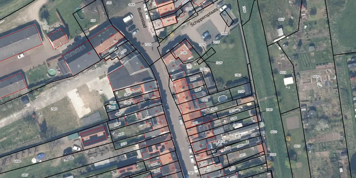 Buitenstad 43 is gelegen op kadastraal perceel VAN00B4899. Deze kadastrale aanduiding is uniek en wordt gebruikt door het Kadaster om eigendomsrechten en andere zakelijke rechten vast te leggen. Het perceel maakt onderdeel uit van de kadastrale gemeente Vianen.