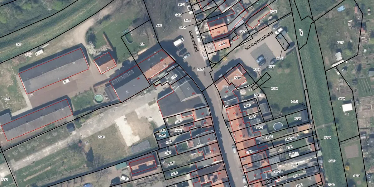 Buitenstad 56 is gelegen op kadastraal perceel VAN00B7943. Deze kadastrale aanduiding is uniek en wordt gebruikt door het Kadaster om eigendomsrechten en andere zakelijke rechten vast te leggen. Het perceel maakt onderdeel uit van de kadastrale gemeente Vianen.