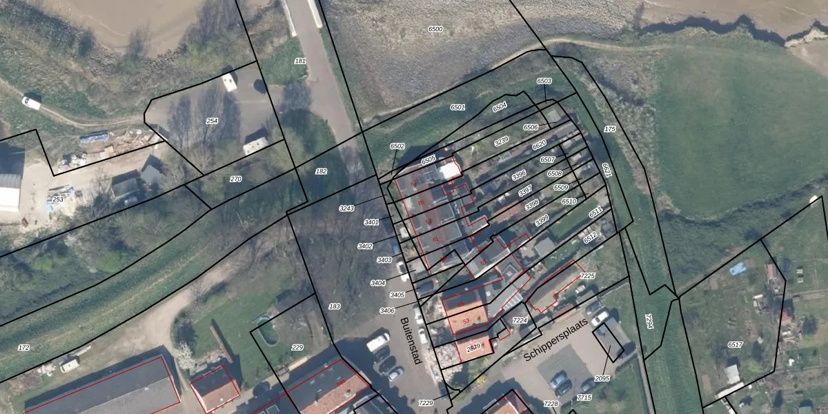 Buitenstad 65 is gelegen op kadastraal perceel VAN00B6620. Deze kadastrale aanduiding is uniek en wordt gebruikt door het Kadaster om eigendomsrechten en andere zakelijke rechten vast te leggen. Het perceel maakt onderdeel uit van de kadastrale gemeente Vianen.