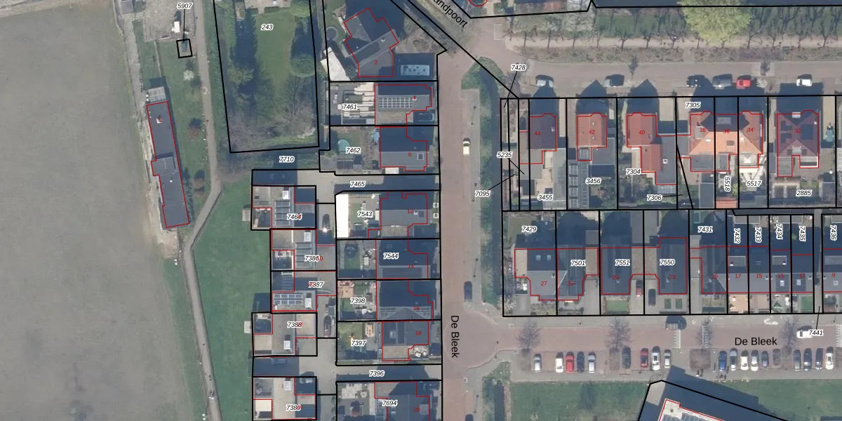 Het perceel waarop De Bleek 12 staat heeft een oppervlakte van 285 m². Dit is een middelgroot perceel. De perceeloppervlakte wordt geregistreerd door het Kadaster. Gedetailleerde informatie over de maten van dit perceel kunt u vinden in het rapport Kadastrale kaart met maatvoering van De Bleek 12.