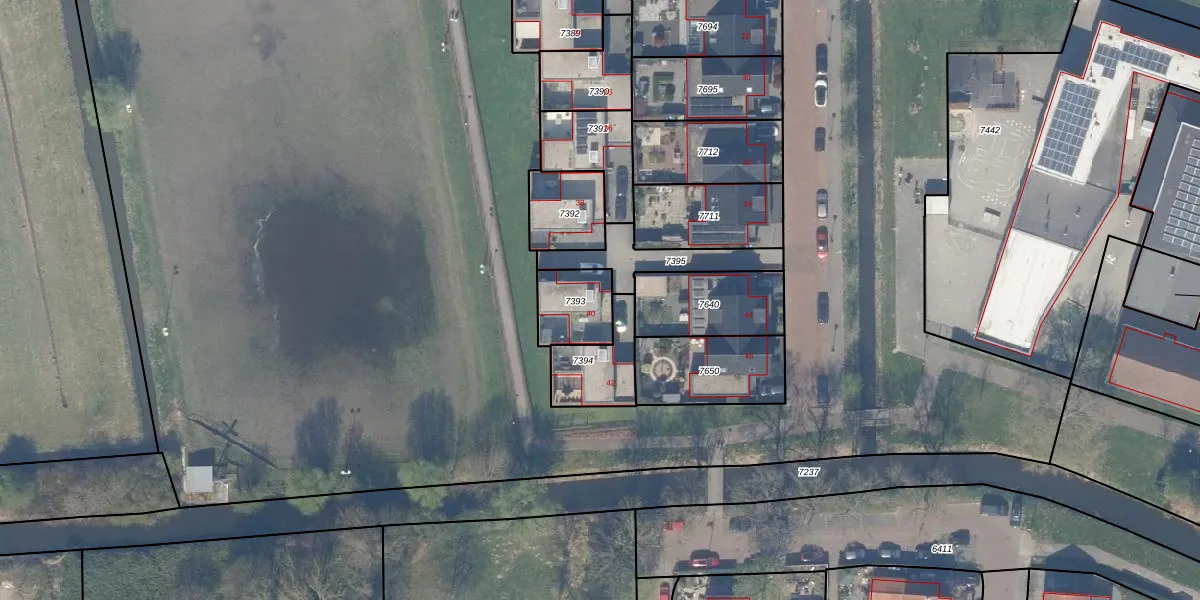 Gebruik de zoekbalk of klik op een perceel voor informatie over de adressen binnen dit perceel.
