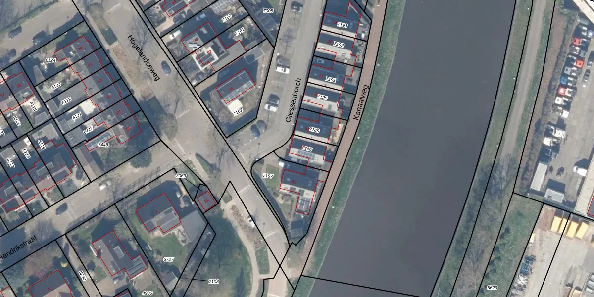 Giessenborch 33 is gelegen op kadastraal perceel VAN00B7188. Deze kadastrale aanduiding is uniek en wordt gebruikt door het Kadaster om eigendomsrechten en andere zakelijke rechten vast te leggen. Het perceel maakt onderdeel uit van de kadastrale gemeente Vianen.