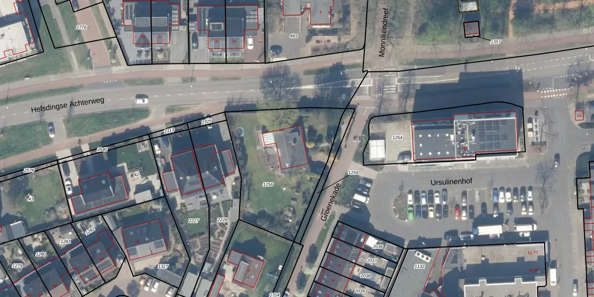 Groenekade 1 is gelegen op kadastraal perceel VAN00D1256. Deze kadastrale aanduiding is uniek en wordt gebruikt door het Kadaster om eigendomsrechten en andere zakelijke rechten vast te leggen. Het perceel maakt onderdeel uit van de kadastrale gemeente Vianen.