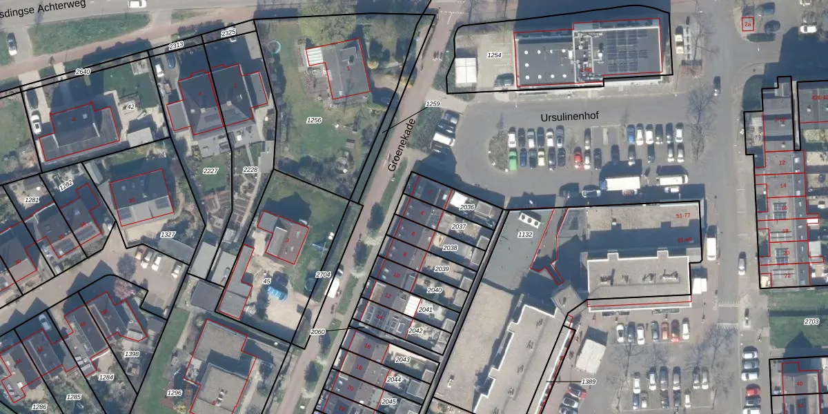 Groenekade 4 is gelegen op kadastraal perceel VAN00D2037. Deze kadastrale aanduiding is uniek en wordt gebruikt door het Kadaster om eigendomsrechten en andere zakelijke rechten vast te leggen. Het perceel maakt onderdeel uit van de kadastrale gemeente Vianen.