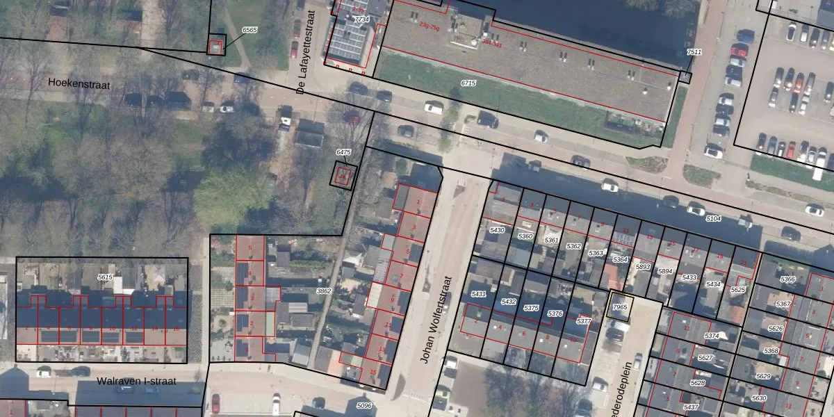 Het perceel waarop Johan Wolfertstraat 1 staat heeft een oppervlakte van 1934 m². Dit is een zeer groot perceel. De perceeloppervlakte wordt geregistreerd door het Kadaster. Gedetailleerde informatie over de maten van dit perceel kunt u vinden in het rapport Kadastrale kaart met maatvoering van Johan Wolfertstraat 1.