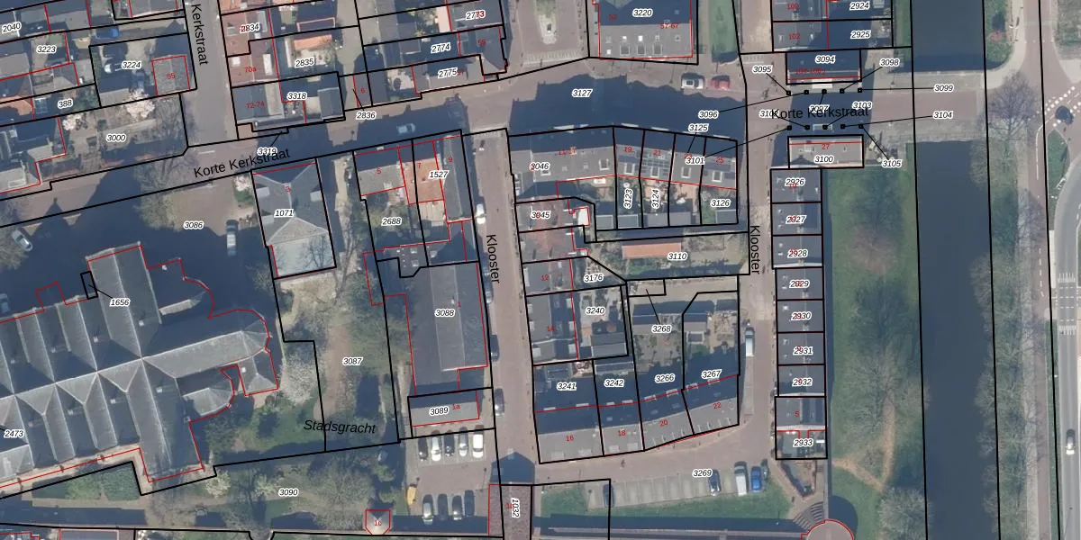 Gebruik de zoekbalk of klik op een perceel voor informatie over de adressen binnen dit perceel.