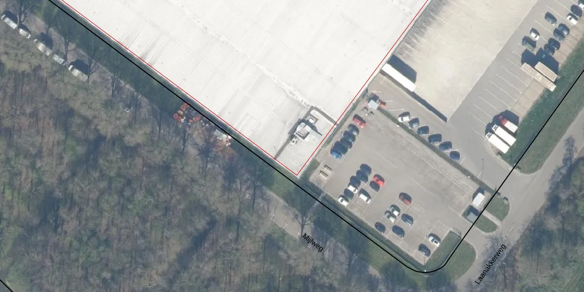 Het perceel waarop Laanakkerweg 16 staat heeft een oppervlakte van 5,3 ha. Dit is een zeer groot perceel. De perceeloppervlakte wordt geregistreerd door het Kadaster. Gedetailleerde informatie over de maten van dit perceel kunt u vinden in het rapport Kadastrale kaart met maatvoering van Laanakkerweg 16.