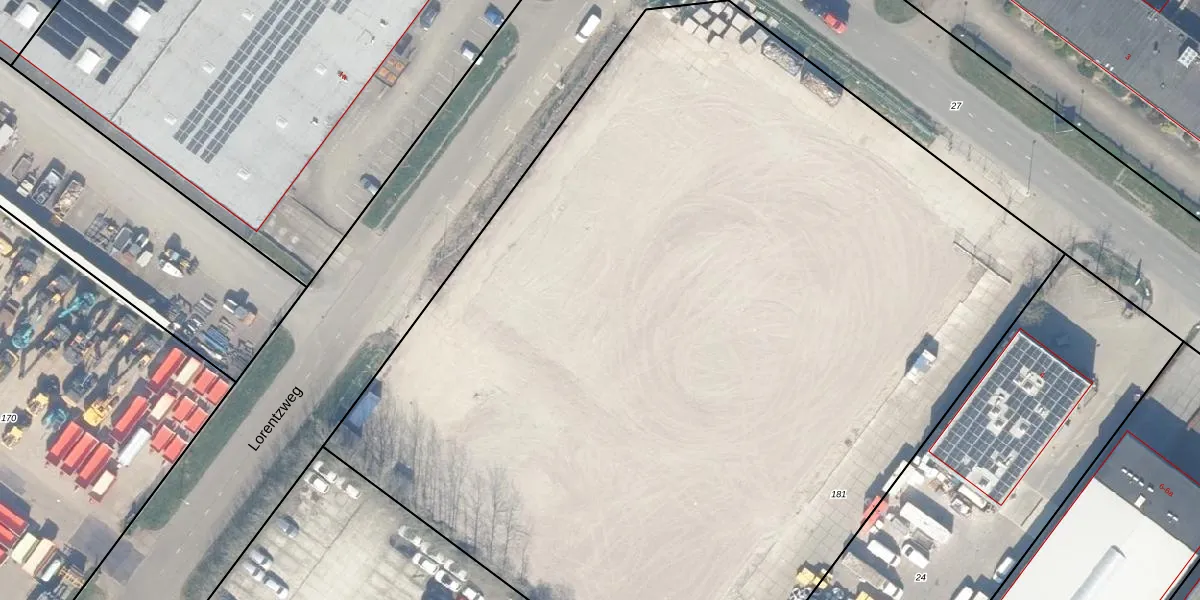 Het perceel waarop Lorentzweg 2-28 staat heeft een oppervlakte van 7958 m². Dit is een zeer groot perceel. De perceeloppervlakte wordt geregistreerd door het Kadaster. Gedetailleerde informatie over de maten van dit perceel kunt u vinden in het rapport Kadastrale kaart met maatvoering van Lorentzweg 2-28.
