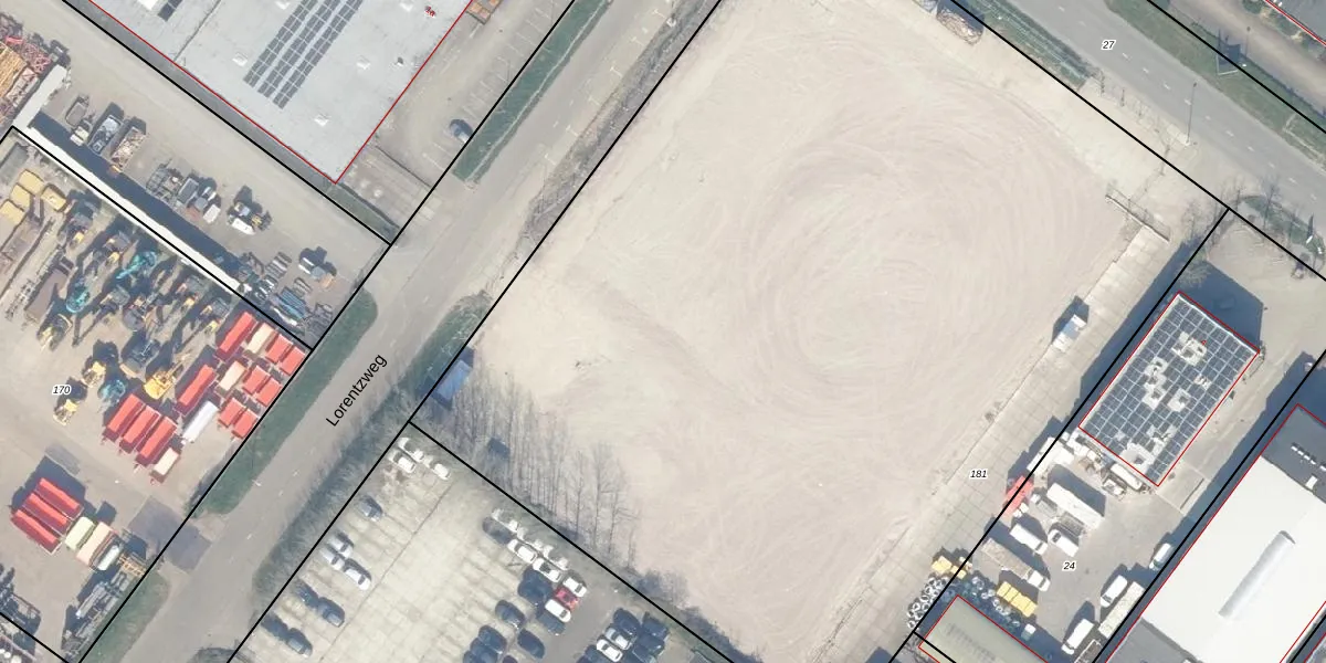 Het perceel waarop Lorentzweg 2-45 staat heeft een oppervlakte van 7958 m². Dit is een zeer groot perceel. De perceeloppervlakte wordt geregistreerd door het Kadaster. Gedetailleerde informatie over de maten van dit perceel kunt u vinden in het rapport Kadastrale kaart met maatvoering van Lorentzweg 2-45.