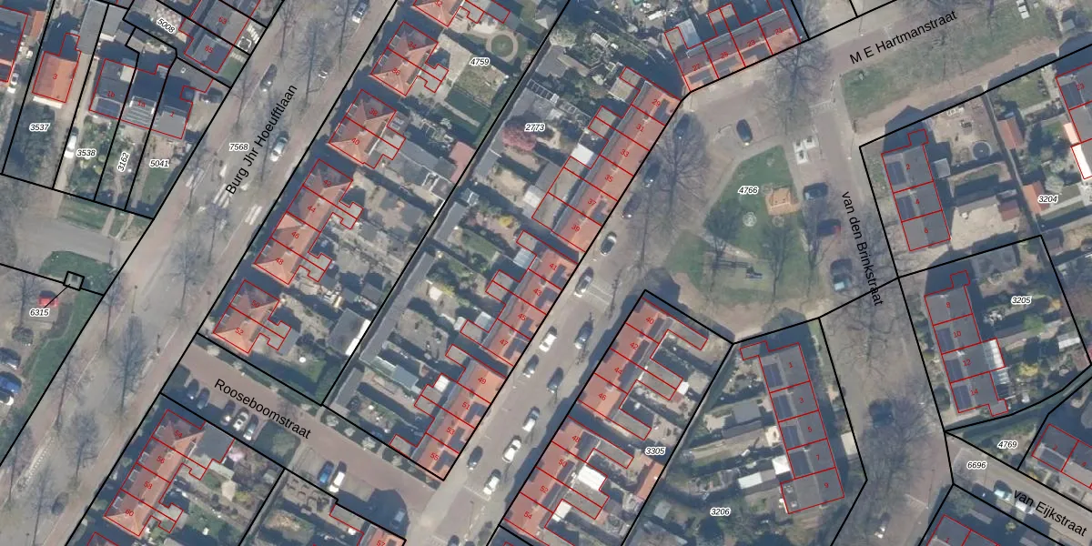 M E Hartmanstraat 41 is gelegen op kadastraal perceel VAN00B2773. Deze kadastrale aanduiding is uniek en wordt gebruikt door het Kadaster om eigendomsrechten en andere zakelijke rechten vast te leggen. Het perceel maakt onderdeel uit van de kadastrale gemeente Vianen.