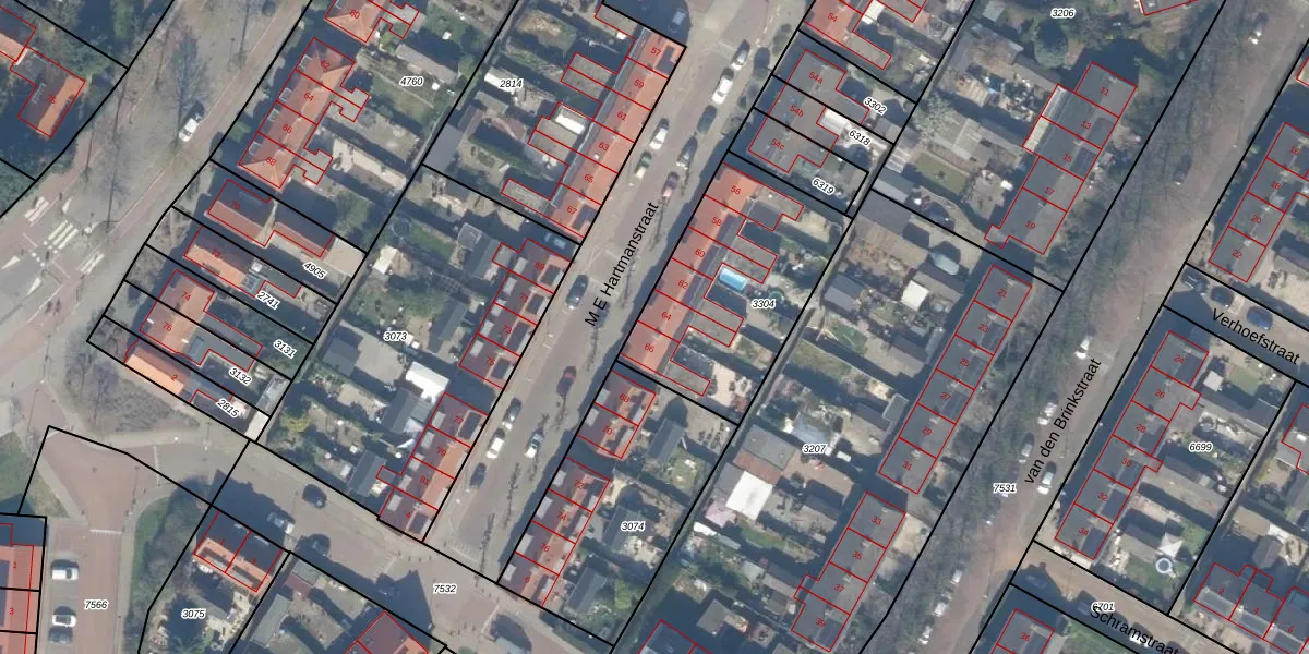 M E Hartmanstraat 64 is gelegen op kadastraal perceel VAN00B3304. Deze kadastrale aanduiding is uniek en wordt gebruikt door het Kadaster om eigendomsrechten en andere zakelijke rechten vast te leggen. Het perceel maakt onderdeel uit van de kadastrale gemeente Vianen.