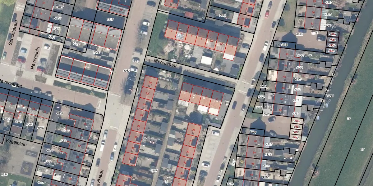 Merelstraat 1 is gelegen op kadastraal perceel VAN00B3857. Deze kadastrale aanduiding is uniek en wordt gebruikt door het Kadaster om eigendomsrechten en andere zakelijke rechten vast te leggen. Het perceel maakt onderdeel uit van de kadastrale gemeente Vianen.