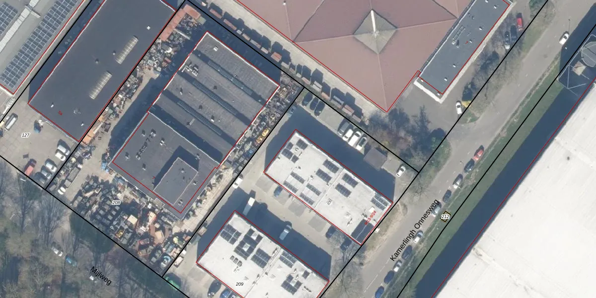 Het perceel waarop Mijlweg 9-24 staat heeft een oppervlakte van 3740 m². Dit is een zeer groot perceel. De perceeloppervlakte wordt geregistreerd door het Kadaster. Gedetailleerde informatie over de maten van dit perceel kunt u vinden in het rapport Kadastrale kaart met maatvoering van Mijlweg 9-24.