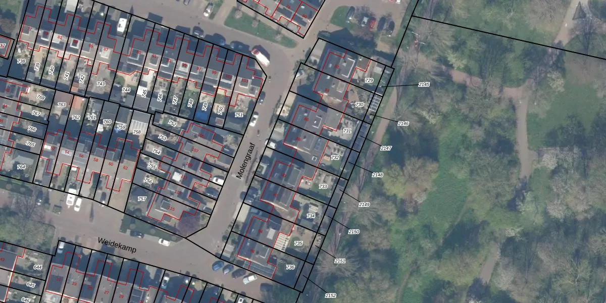 Het perceel waarop Molengraaf 88 staat heeft een oppervlakte van 265 m². Dit is een middelgroot perceel. De perceeloppervlakte wordt geregistreerd door het Kadaster. Gedetailleerde informatie over de maten van dit perceel kunt u vinden in het rapport Kadastrale kaart met maatvoering van Molengraaf 88.