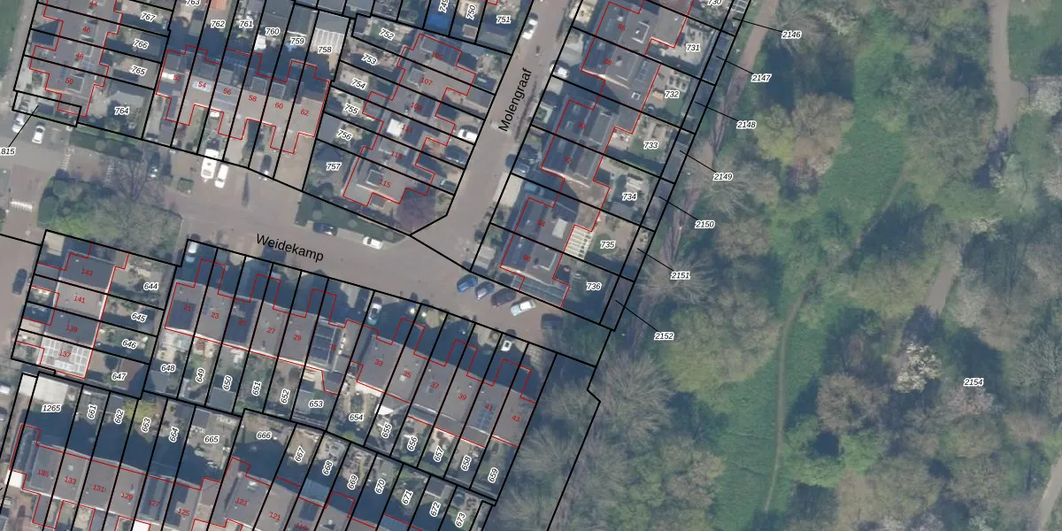 Het perceel waarop Molengraaf 96 staat heeft een oppervlakte van 265 m². Dit is een middelgroot perceel. De perceeloppervlakte wordt geregistreerd door het Kadaster. Gedetailleerde informatie over de maten van dit perceel kunt u vinden in het rapport Kadastrale kaart met maatvoering van Molengraaf 96.