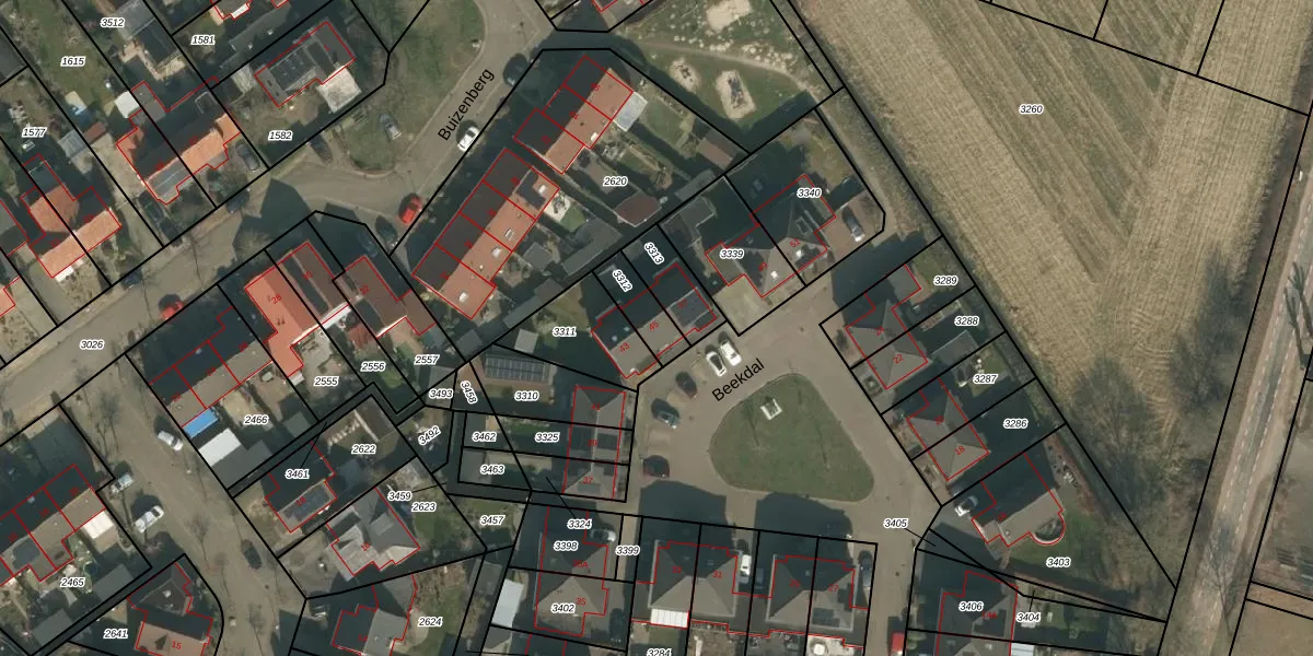 Beekdal 45 is gelegen op kadastraal perceel CUI00B3312. Deze kadastrale aanduiding is uniek en wordt gebruikt door het Kadaster om eigendomsrechten en andere zakelijke rechten vast te leggen. Het perceel maakt onderdeel uit van de kadastrale gemeente Cuijk.