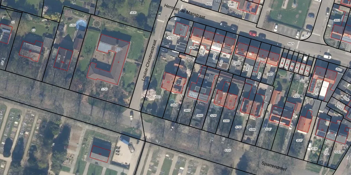 Sparrendreef 21 is gelegen op kadastraal perceel VAN00B3464. Deze kadastrale aanduiding is uniek en wordt gebruikt door het Kadaster om eigendomsrechten en andere zakelijke rechten vast te leggen. Het perceel maakt onderdeel uit van de kadastrale gemeente Vianen.