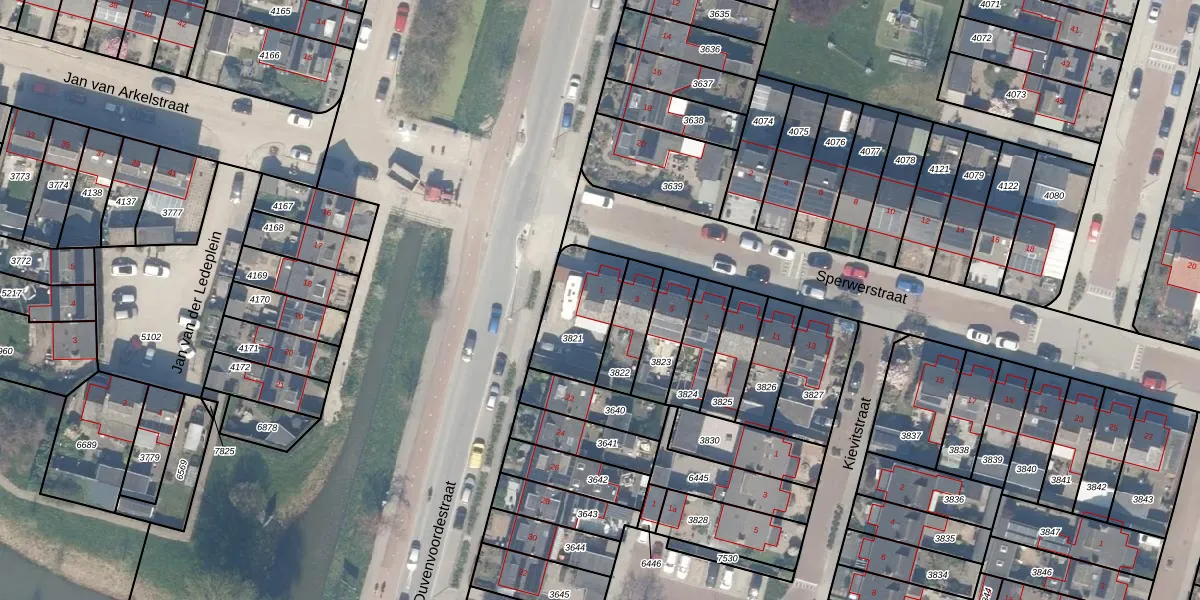 Gebruik de zoekbalk of klik op een perceel voor informatie over de adressen binnen dit perceel.