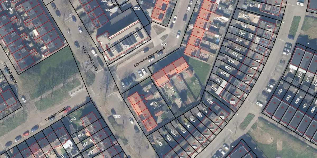 Stammershoefstraat 1 is gelegen op kadastraal perceel VAN00B3285. Deze kadastrale aanduiding is uniek en wordt gebruikt door het Kadaster om eigendomsrechten en andere zakelijke rechten vast te leggen. Het perceel maakt onderdeel uit van de kadastrale gemeente Vianen.