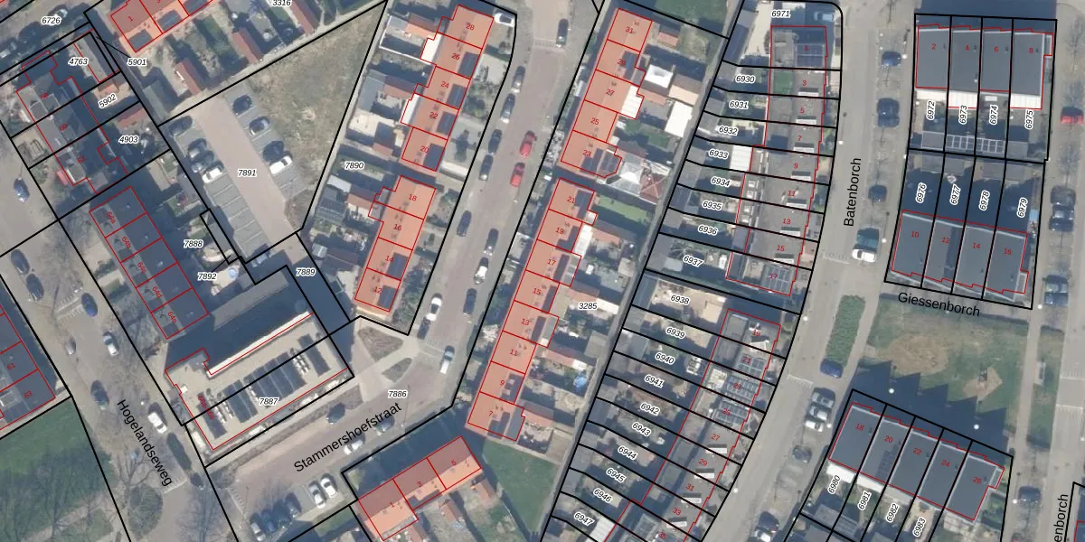 Stammershoefstraat 17 is gelegen op kadastraal perceel VAN00B3285. Deze kadastrale aanduiding is uniek en wordt gebruikt door het Kadaster om eigendomsrechten en andere zakelijke rechten vast te leggen. Het perceel maakt onderdeel uit van de kadastrale gemeente Vianen.