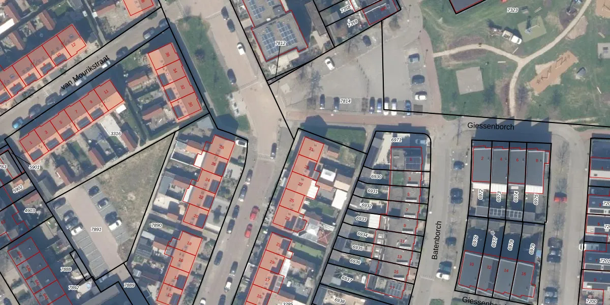 Het adres is gelegen op perceel 3285 in de sectie B en de kadastrale gemeente Vianen. De kadastrale aanduiding is aldus VAN00-B-3285. Het perceel is 3085 m² groot. Dat is kleiner dan de gemiddelde perceeloppervlakte in Vianen, dat op 3789,58 m² ligt. Het grootste perceel in de kadastrale gemeente is 61,8 ha. Het kleinste perceel heeft een oppervlakte van 0 m². Er zijn 16 adressen aanwezig op het perceel. De huidige grenzen van het perceel zijn digitaal in de Basisregistratie Kadaster (BRK) geregistreerd op 12-02-2010.
