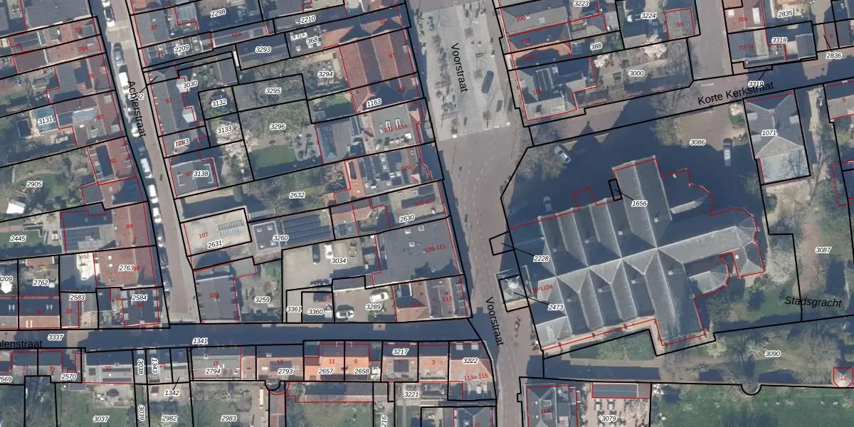 Voorstraat 107 is gelegen op kadastraal perceel VAN00A2630. Deze kadastrale aanduiding is uniek en wordt gebruikt door het Kadaster om eigendomsrechten en andere zakelijke rechten vast te leggen. Het perceel maakt onderdeel uit van de kadastrale gemeente Vianen.