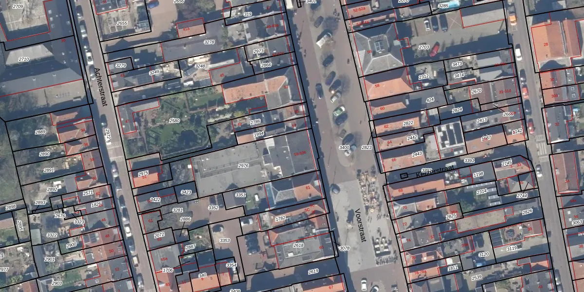 Het perceel waarop Voorstraat 59-b staat heeft een oppervlakte van 718 m². Dit is een groot perceel. De perceeloppervlakte wordt geregistreerd door het Kadaster. Gedetailleerde informatie over de maten van dit perceel kunt u vinden in het rapport Kadastrale kaart met maatvoering van Voorstraat 59-b.