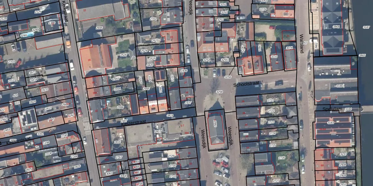 Het perceel waarop Weesdijk 29 staat heeft een oppervlakte van 86 m². Dit is een klein perceel. De perceeloppervlakte wordt geregistreerd door het Kadaster. Gedetailleerde informatie over de maten van dit perceel kunt u vinden in het rapport Kadastrale kaart met maatvoering van Weesdijk 29.
