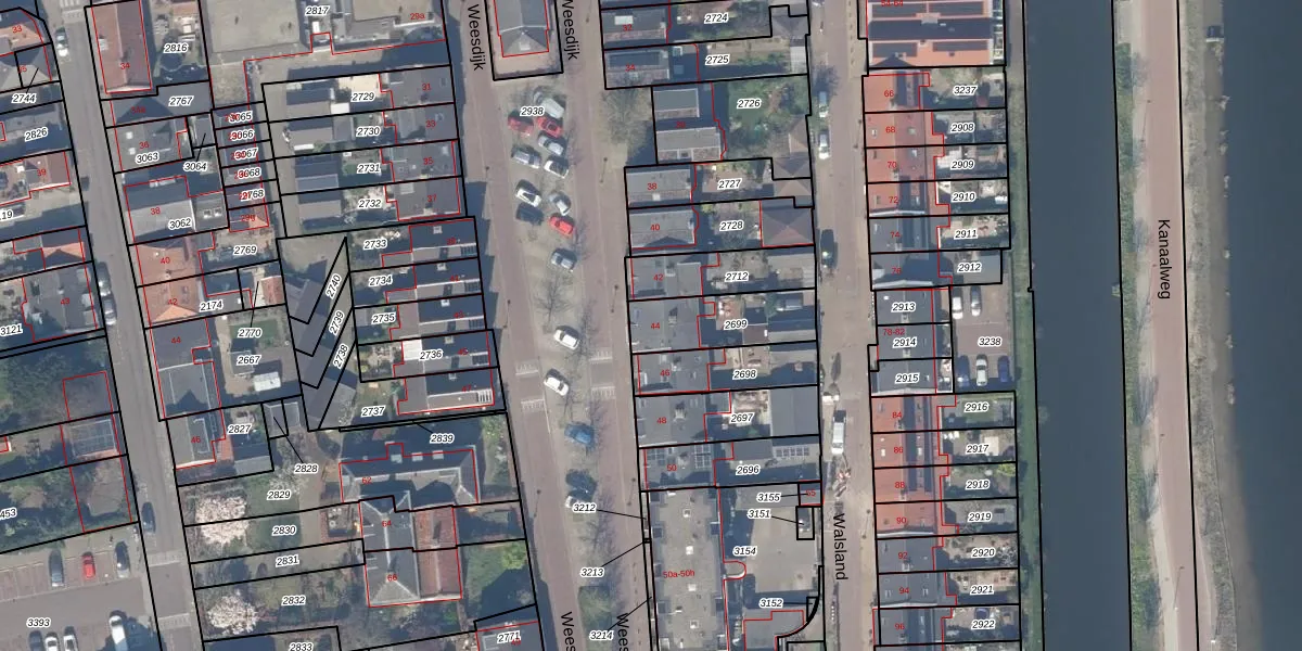 Gebruik de zoekbalk of klik op een perceel voor informatie over de adressen binnen dit perceel.