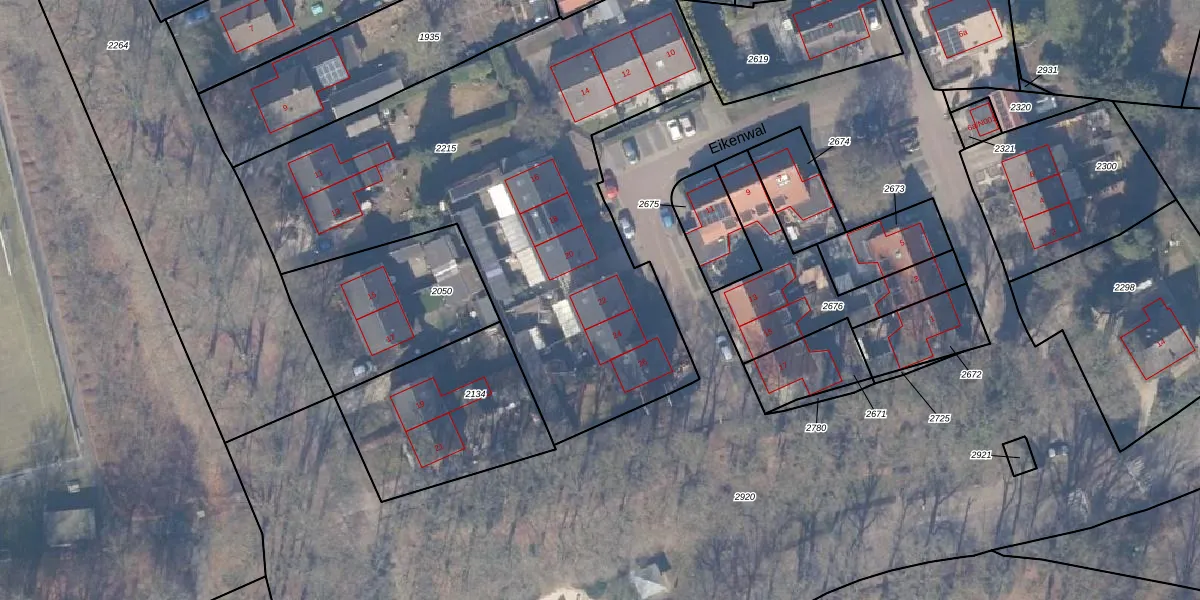 Het perceel waarop Eikenwal 22 staat heeft een oppervlakte van 2760 m². Dit is een zeer groot perceel. De perceeloppervlakte wordt geregistreerd door het Kadaster. Gedetailleerde informatie over de maten van dit perceel kunt u vinden in het rapport Kadastrale kaart met maatvoering van Eikenwal 22.